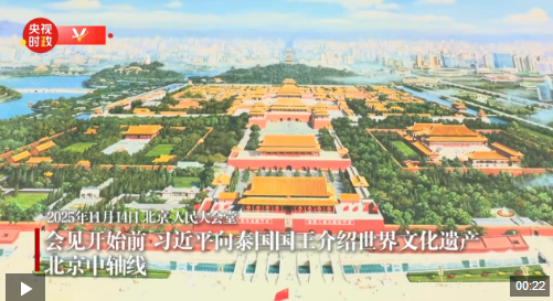 會(huì)見開始前,習(xí)近平向泰國(guó)國(guó)王介紹世界文化遺產(chǎn)——北京中軸線。